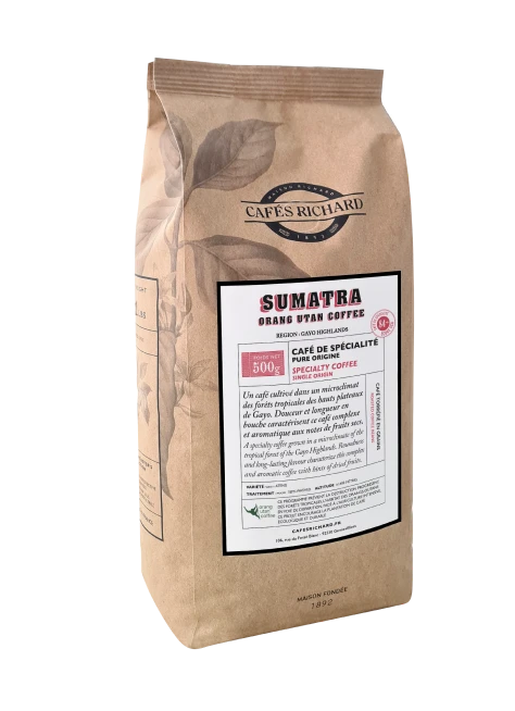 Incarne l'âme de l'Indonésie avec sa tasse ample et racée. Un café complexe et aromatique aux notes de fruits secs. Depuis plus de 10 ans, Cafés Richard est engagé dans le Sumatran Orangutan Conservation Program qui a notamment pour objectif de préserver les orangs-utans et de lutter contre la déforestation (voir article pour le détail de nos actions)