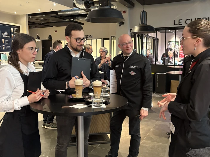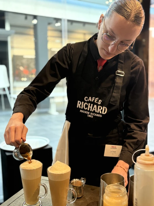La première, « Création d’une boisson lactée gourmande inspirée d’un coffee-shop », composée avec notre nouvel Asseblage Signature « Rendez-vous Cafés Richard » évaluait leur maîtrise technique de l’expresso, de la mousse de lait (classique ou végétale) et leur inspiration pour construire une boisson gourmande de qualité.