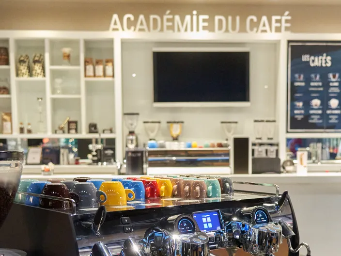 Avec un espace de 6 postes Barista totalement équipés (machine, moulin, blender…) et une salle de dégustation, ce sont 700 m2 dédiés au café. Nos formations Café s’adressent à nos clients professionnels : CHR indépendants ou collectivités, coffee shops, chaînes de restauration, écoles hôtelières... Elles se déroulent à l’Académie du Café et dans toute la France grâce aux showrooms de nos agences régionales, mais aussi chez nos clients grâce à nos experts qui sillonnent tout le territoire.