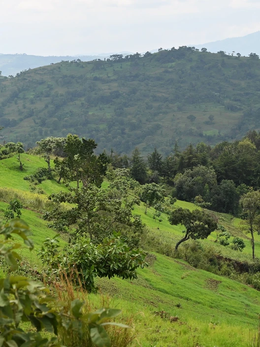La région Gedeo est un exemple d’harmonie entre nature, élevage, culture et agriculture. Dans ce paysage montagneux, l’agroforesterie traditionnelle, qui intègre caféiers et ensètes, assure la sécurité alimentaire des habitants tout en respectant la terre et les croyances locales. Cette symbiose entre l’homme et son environnement est menacée par une pression